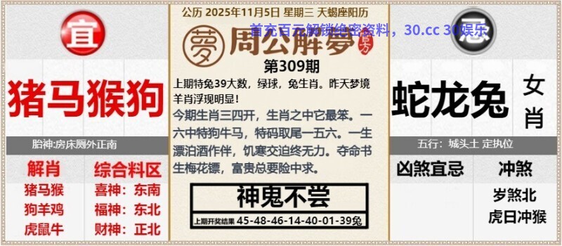 | 308期:神算天地╠天肖天肖╣开:兔39准 |