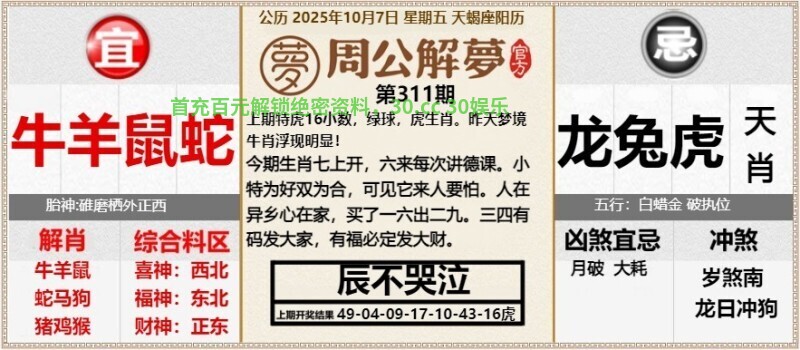| 301期:稳杀六码╠01.08.20.32.44.47╣开:牛05准 |